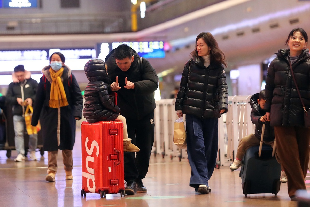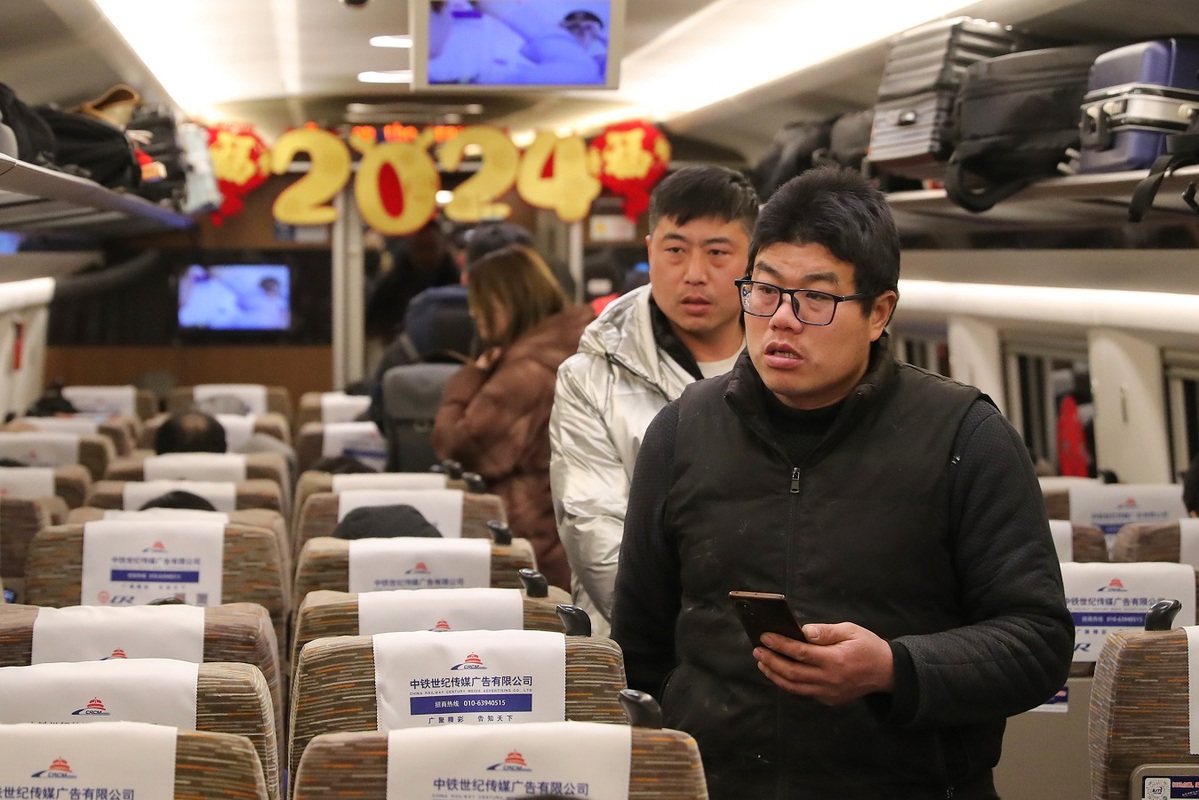 The travel peak before the Spring Festival will be on Feb 7, with 1.32 million passenger trips expected to be made. The return peak will be on Feb 25, with 1.35 million passenger trips projected. The 2024 Spring Festival travel rush will last until Mar 5.