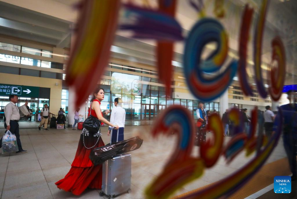 A passenger walks in the waiting hall of Vientiane Station of the China-Laos Railway in Vientiane, Laos, Jan. 26, 2024. The China-Laos Railway is witnessing its first Spring Festival travel rush since the railway started cross-border passenger services on April 13, 2023. (Photo by Yang Yongquan/Xinhua)