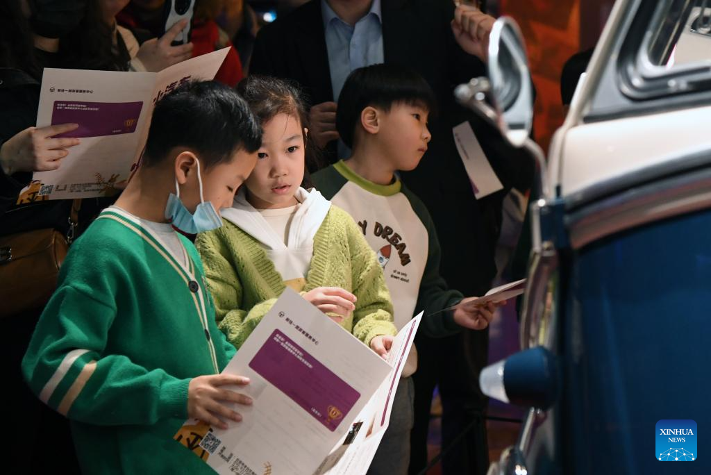 Children learn about automobile knowledge at Beijing Auto Museum in Beijing, capital of China, Jan. 28, 2024. Many children visit Beijing Auto Museum with their parents during this winter vacation to attend popular-science lectures and learn about automobile knowledge. (Xinhua/Ren Chao)