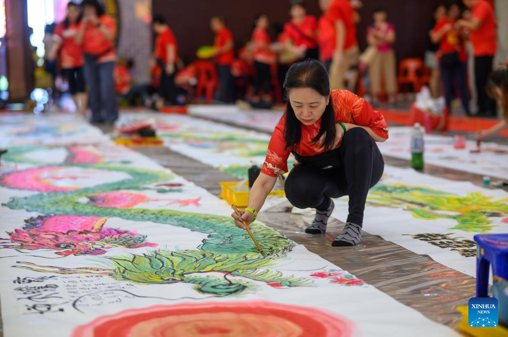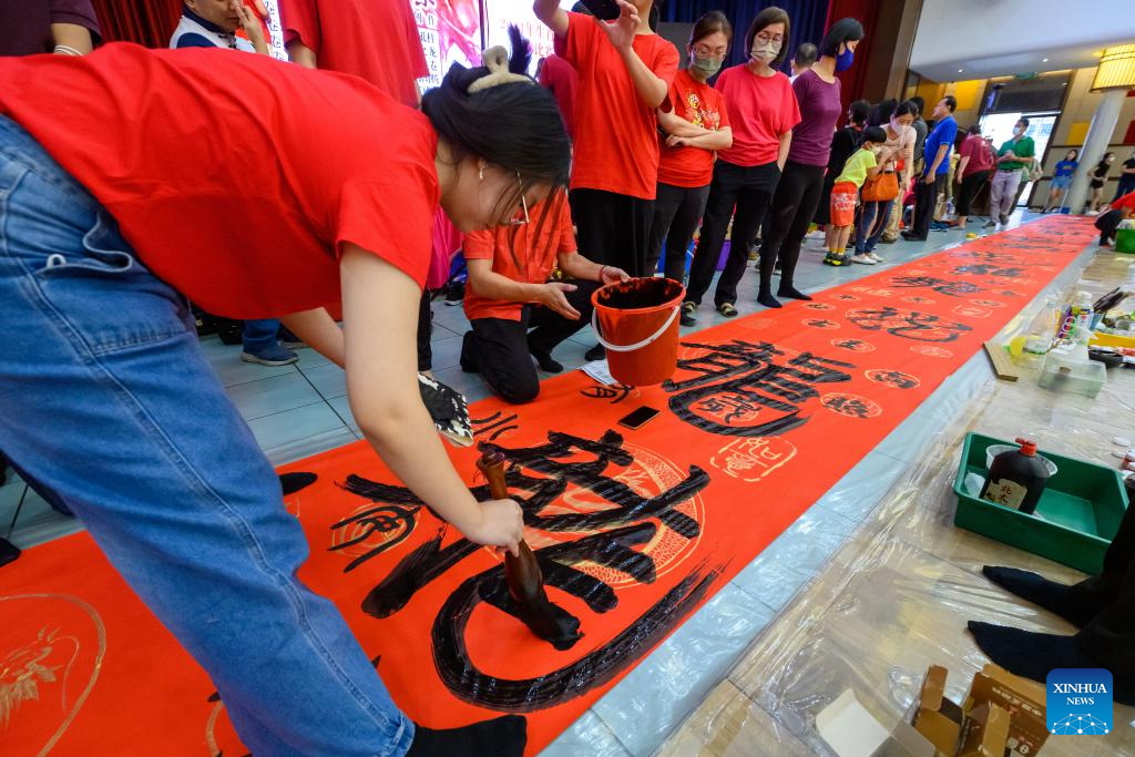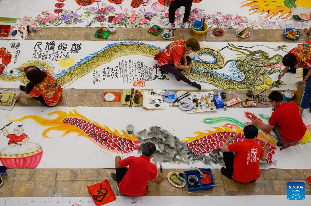 Students in Malaysia create dragon-themed long scrolls for upcoming Chinese Lunar New Year