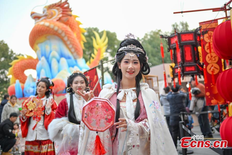 People in traditional Chinese costumes attend a parade to celebrate the upcoming Year of the Dragon in Nanjing, east China's Jiangsu Province, Jan. 28, 2024. (Photo: China News Service/Yang Bo)