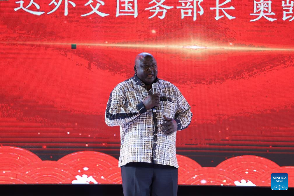 Henry Okello Oryem, Uganda's minister of state for international affairs, speaks at the Chinese New Year's eve gala in Kampala, Uganda, on Jan. 28, 2024. (Photo by Hajarah Nalwadda/Xinhua)