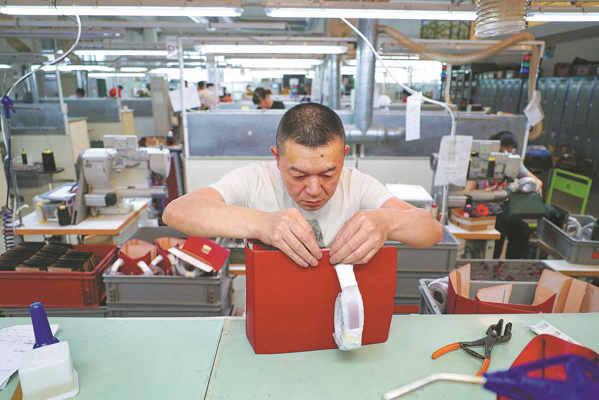 A Chinese worker crafts a high-end luxury handbag at a Chinese-owned factory in Florence, Italy. DJ CLARK/CHINA DAILY