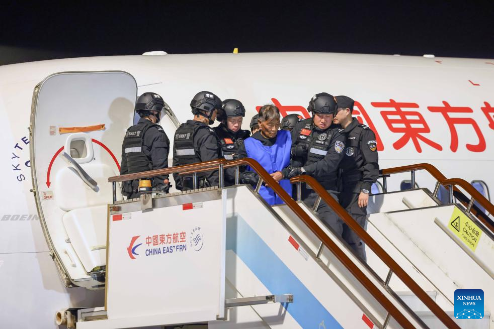 The ten suspects were escorted by Chinese police officers back to China via a charter flight that landed in Kunming on Tuesday evening, the ministry said, adding that it is another landmark achievement of Chinese and Myanmar police cooperation in law enforcement.