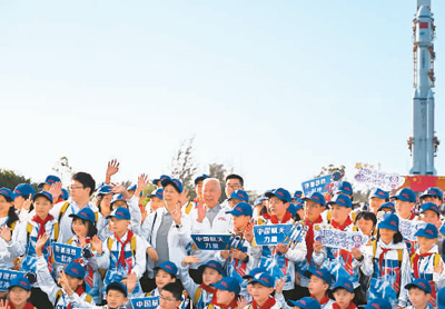 Children pose for a picture at the Wenchang Spacecraft Launch Site in south China's Hainan Province. (Xinhua/Fan Yuqing)