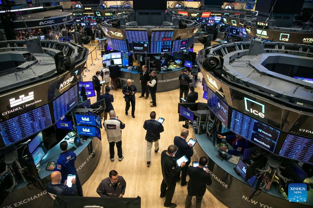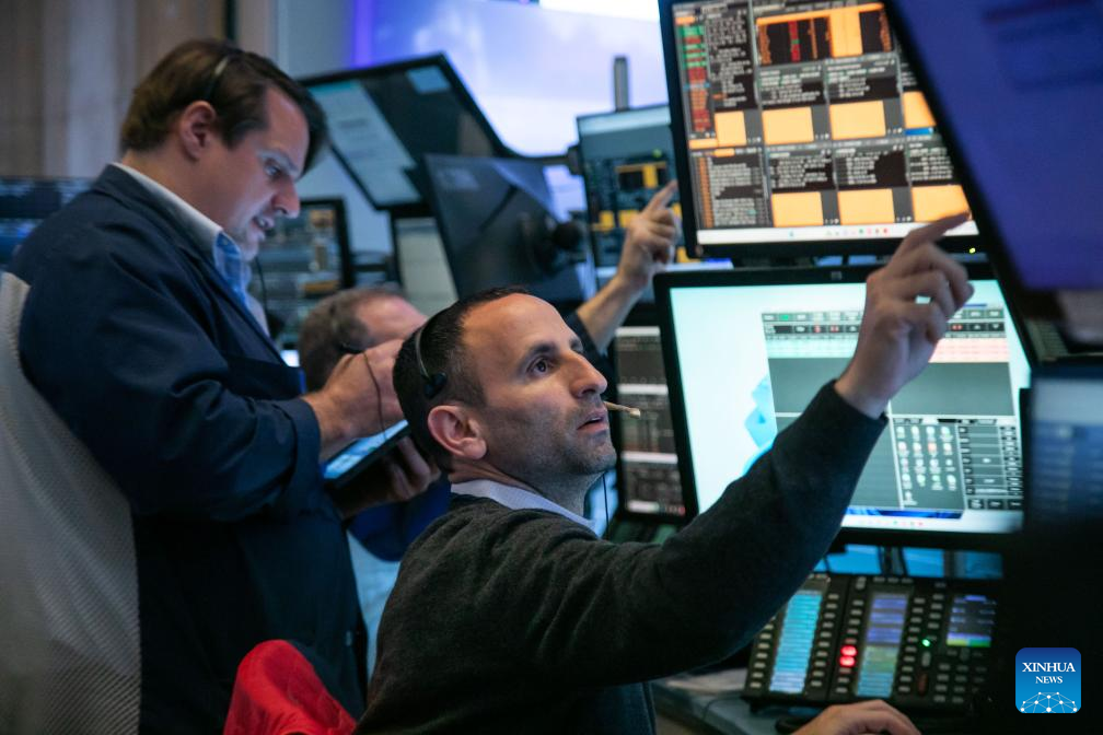 NEW YORK, Jan. 31 (Xinhua) -- U.S. stocks ended lower on Wednesday, on the central bank's anticipated decision to hold rates steady, and Fed Chair Jerome Powell's hint that the central bank would not begin cutting rates at its next meeting in March.