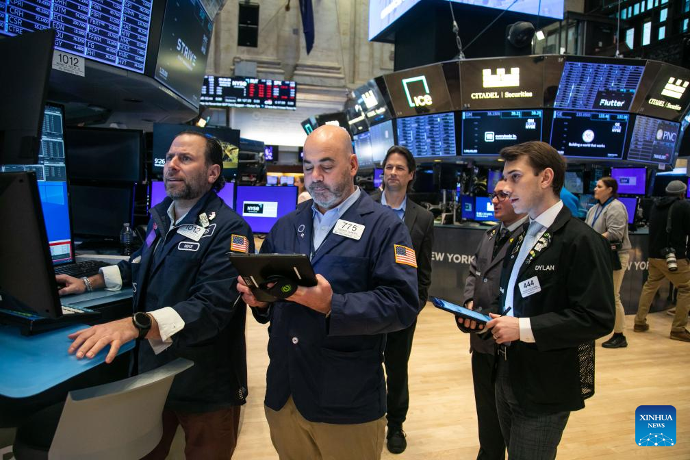 Traders work on the floor of the New York Stock Exchange in New York, the United States, on Jan. 31, 2024. U.S. stocks ended lower on Wednesday. The Dow Jones Industrial Average fell 317.01 points, or 0.82 percent, to 38,150.3. The S&P 500 sank 79.32 points, or 1.61 percent, to 4,845.65. The Nasdaq Composite Index shed 345.89 points, or 2.23 percent, to 15,164.01. (Photo by Michael Nagle/Xinhua)