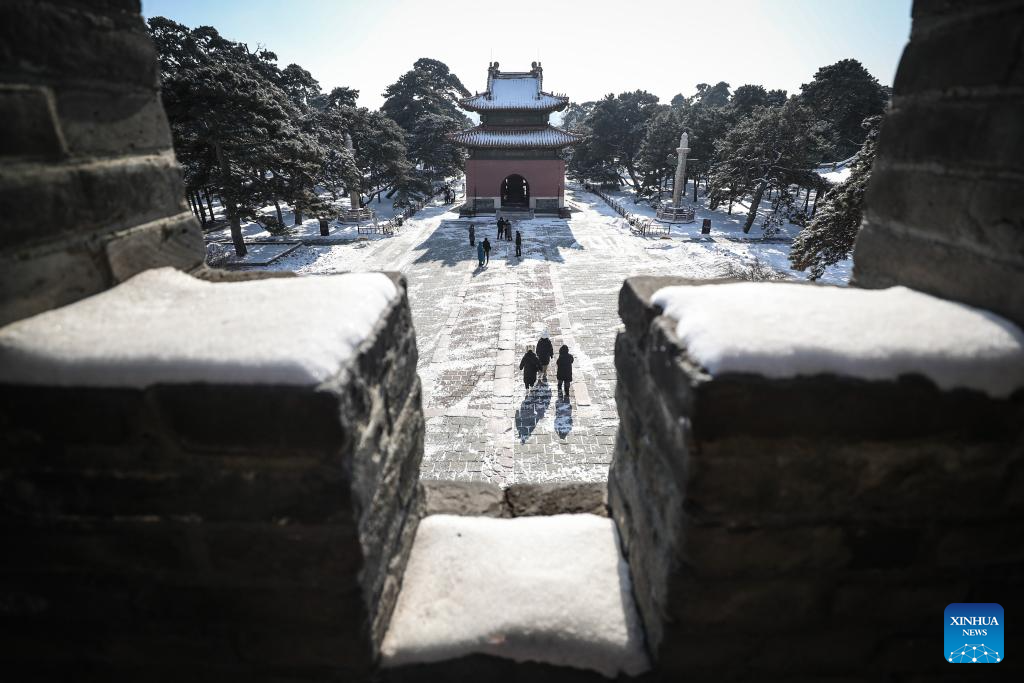 People visit the Beiling Park after a snowfall in Shenyang, northeast China's Liaoning Province, Jan. 31, 2024. (Xinhua/Pan Yulong)