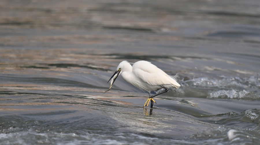 An egret forages in Yundang Lake in Xiamen, southeast China's Fujian Province. (Photo provided to People’s Daily Online/Peng Zhiwei)