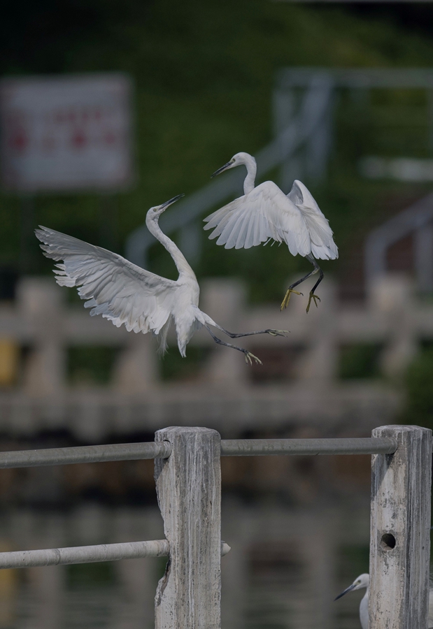 Two egrets fly over Yundang Lake in Xiamen, southeast China's Fujian Province. (Photo provided to People’s Daily Online/Peng Zhiwei)