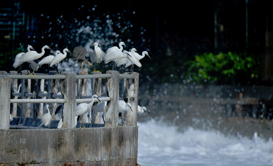 Egrets rest near the sluice of the Yundang Lake in Xiamen, southeast China's Fujian Province. (Photo provided to People’s Daily Online)