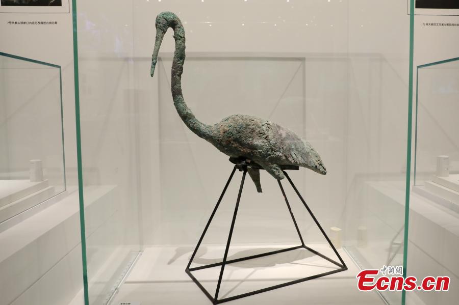 A total of 57 pieces of cultural relics including terracotta figures, bronze aquatic birds were exhibited at the museum.