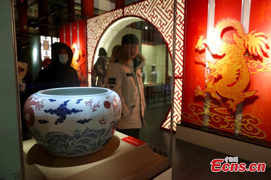 An imperial porcelain with dragon pattern is displayed during a special exhibition to mark the Year of the Dragon at the Summer Palace in Beijing, Feb. 1, 2024. (Photo: China News Service/Yi Haifei)