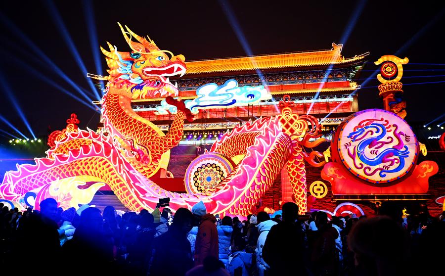 XI'AN, Feb. 3 (Xinhua) -- The 2024 Chang'an Light Show started in Xi'an, capital of northwest China's Shaanxi Province on Friday. Thousands of lights and lanterns decorated many places of interests in the city, including the city wall, the Tang Paradise complex and the Daming Palace National Heritage Park.