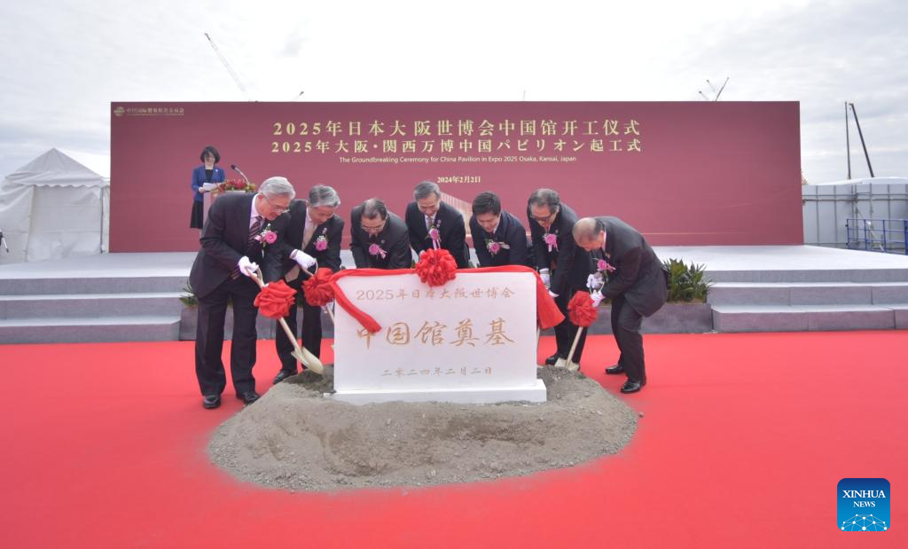 OSAKA, Japan, Feb. 2 (Xinhua) -- The China Pavilion at Expo Osaka, Japan, broke ground here on Friday, marking the commencement of construction for the venue highlighting green development and human-nature harmony.