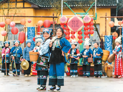 Local villagers, clad in Miao costumes, put on a performance. (Photo courtesy of the organizer of the village gala)