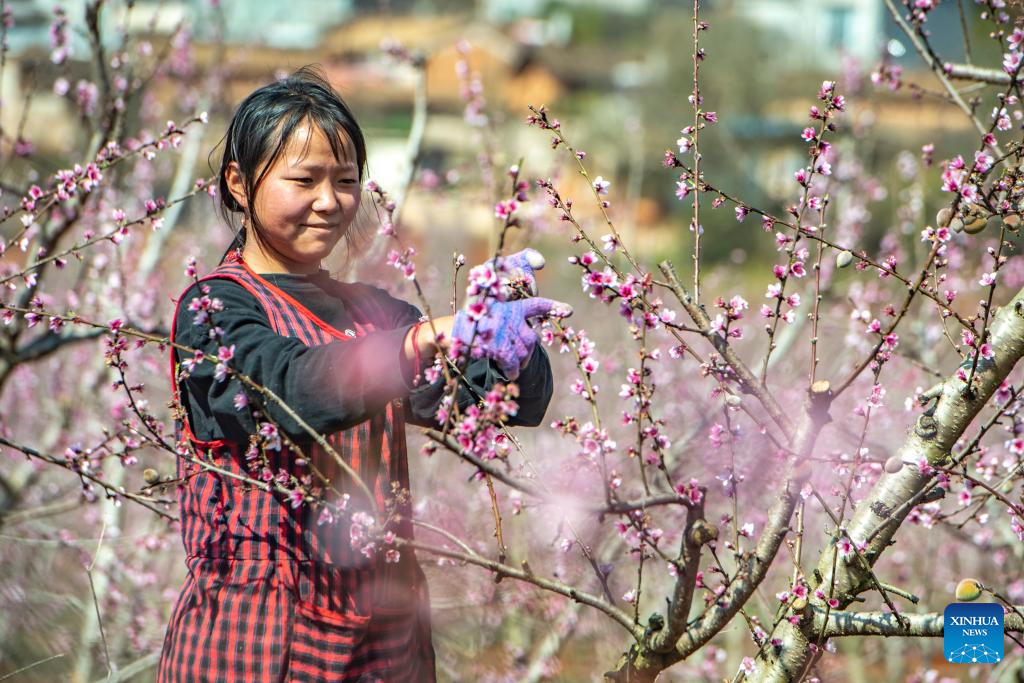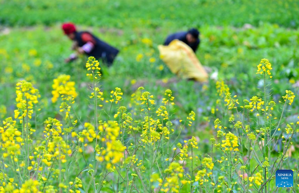 Villagers work in a field in Guandong Town of Congjiang County, Qiandongnan Miao and Dong Autonomous Prefecture, southwest China's Guizhou Province, Feb. 4, 2024. Sunday marks "Lichun", meaning the beginning of spring, the first solar term in the traditional Chinese lunar calendar. (Photo by Lu Zhongnan/Xinhua)