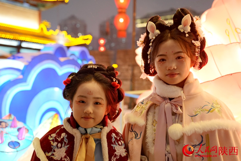 Visitors pose for a photo at a vibrant lantern show to celebrate the upcoming Chinese Lunar New Year in Xi'an, capital of northwest China's Shaanxi Province. (People's Daily Online/Bai Ge)