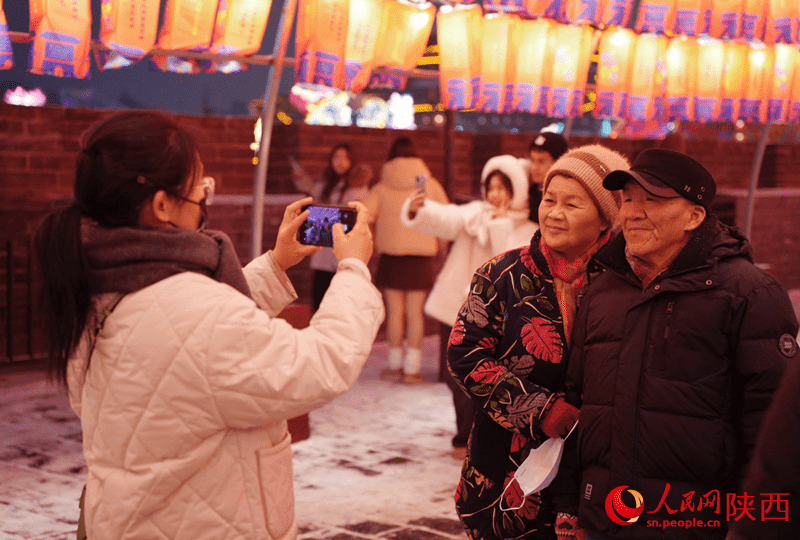 Visitors take photos at the ancient city wall of Xi'an, capital of northwest China's Shaanxi Province, during a lantern show to celebrate the upcoming Chinese Lunar New Year. (People's Daily Online/Bai Ge)