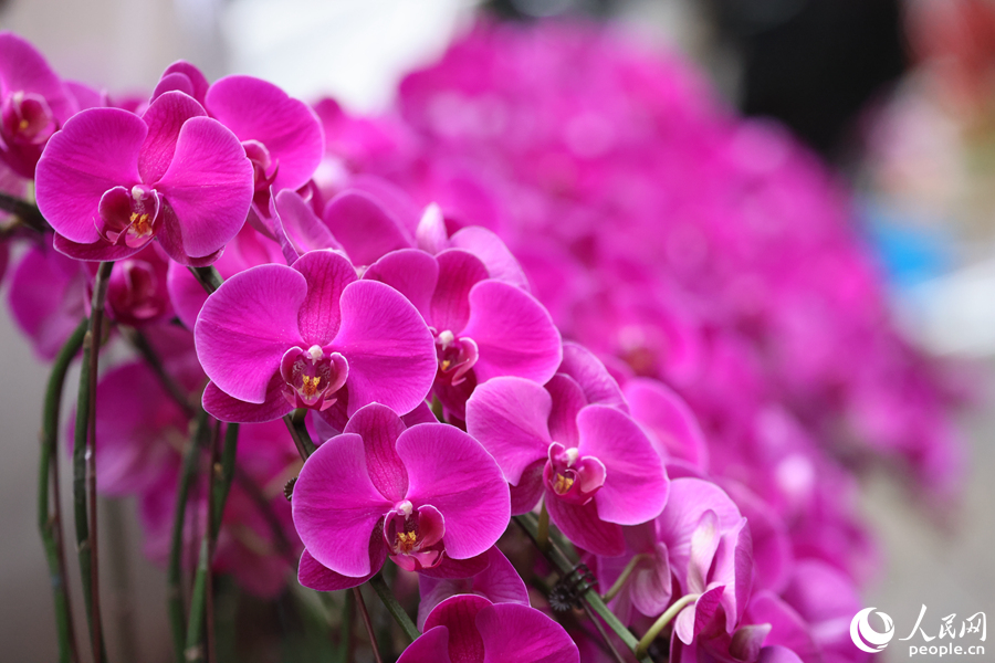 Potted Moth orchids are displayed on the roadside in Xiamen city, southeast China's Fujian province, for the convenience of citizens who want to buy fresh flowers to adorn their homes for the upcoming Spring Festival. (People's Daily Online/Chen Bo)