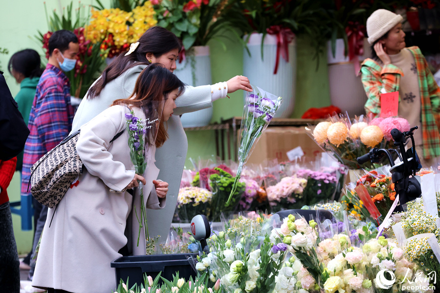 Young consumers buy fresh-cut flowers at a store in Xiamen city, southeast China's Fujian province. (People's Daily Online/Chen Bo)
