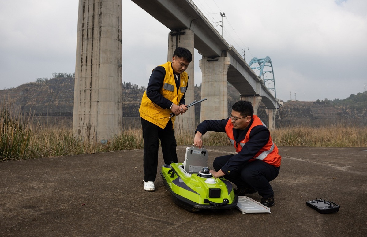 Unmanned boats have been used for bridge inspection along the Chengdu-Chongqing intercity railway. Workers can measure the cross-section of riverbed in upstream and downstream areas with a remote control, and collect accurate and comprehensive data, thus offering a scientific basis for bridge maintenance.