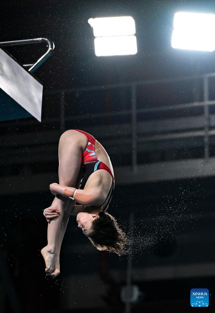 Chen Yuxi of China competes during the women's 10m platform final of diving at the World Aquatics Championships 2024 in Doha, Qatar, Feb. 5, 2024. (Xinhua/Xia Yifang)