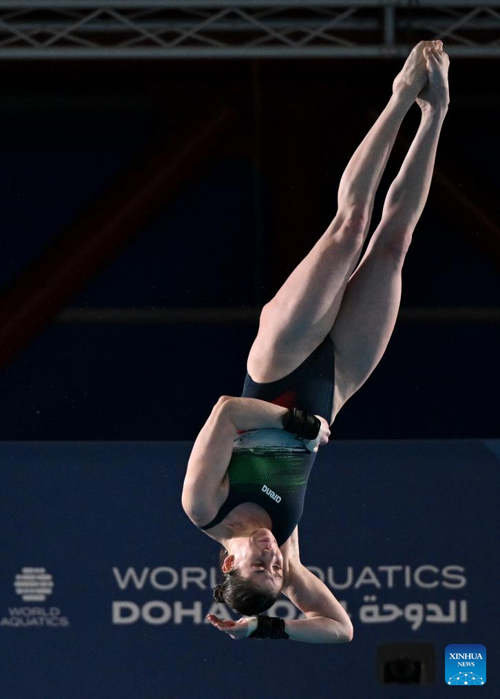 Gabriela Agundez Garcia of Mexico competes during the women's 10m platform final of diving at the World Aquatics Championships 2024 in Doha, Qatar, Feb. 5, 2024. (Xinhua/Luo Yuan)