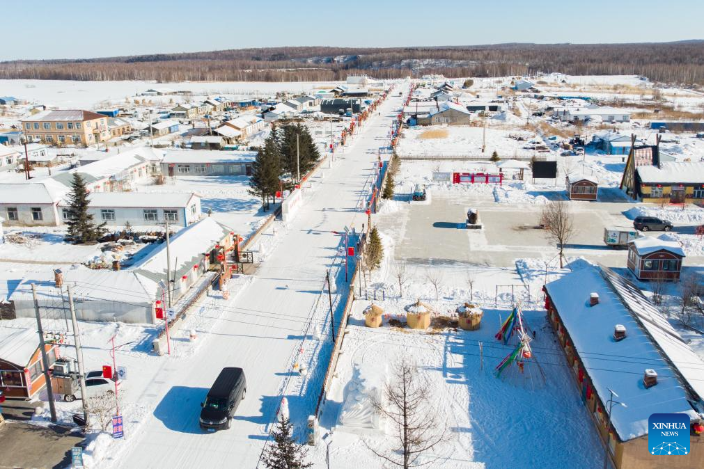 An aerial drone photo taken on Feb. 2, 2024 shows the scenery of Pingtai Village of Kelin Township, Xunke County, northeast China's Heilongjiang Province. (Xinhua/Xie Jianfei)