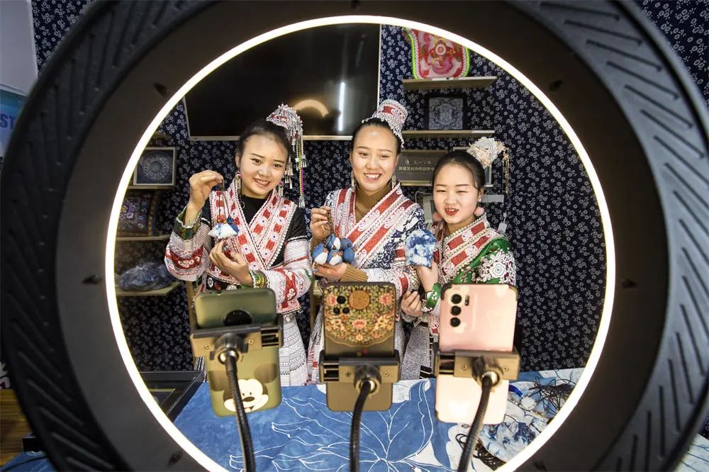 Yang Wenli, a villager from Huawu village in Qianxi city, southwest China's Guizhou Province, walked out of a Miao embroidery workshop with a pair of wax-dyed pants on her arm. This batch of 500 pairs of jeans, hand-dyed with wax and paired with hand-embroidered Miao designs, has become a hit among young people, she said.
