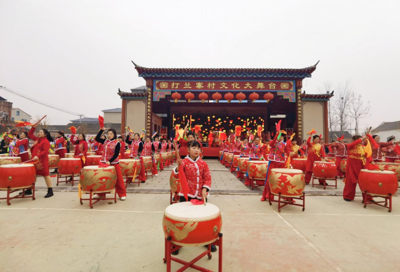 Photo shows a drum performance of a "village gala" in Dalanzhai village, Dingluan township, Changyuan city, central China's Henan Province. (People's Daily Online/Wang Shaoshao)