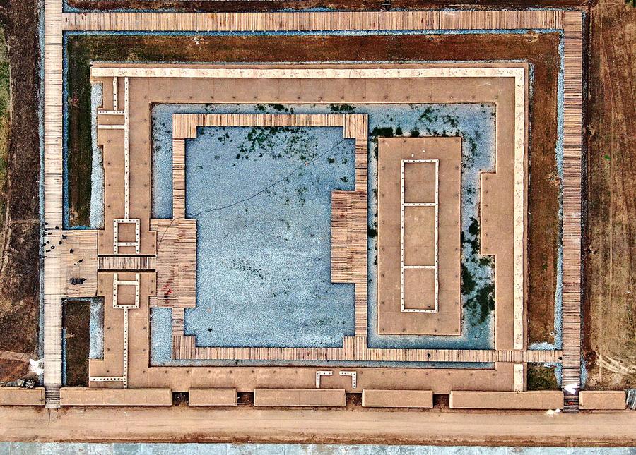 An aerial drone photo taken on Oct. 16, 2019 shows the Erlitou archaeology park in Luoyang, central China's Henan Province. (Xinhua/Li An)
