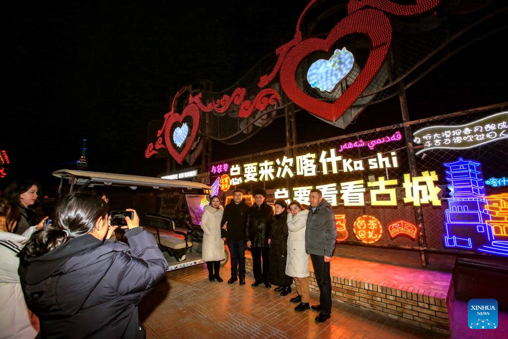 This photo shows a night view of the ancient city of Kashgar, northwest China's Xinjiang Uygur Autonomous Region, Feb. 4, 2024.
