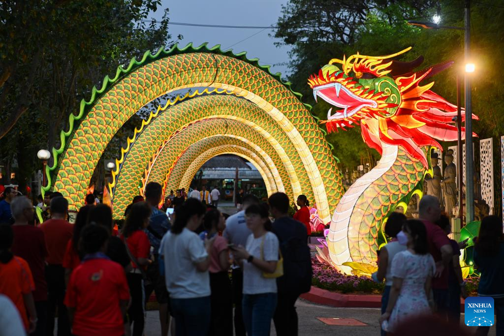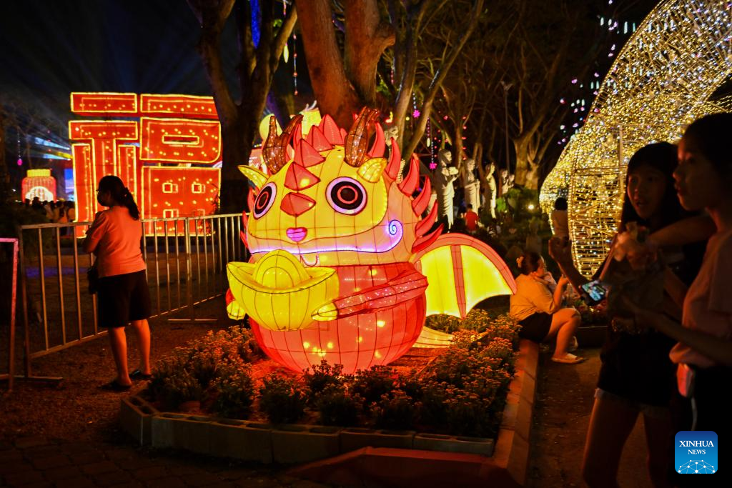 People visit a lantern show ahead of the Chinese Lunar New Year in Selangor state, Malaysia, Feb. 7, 2024. (Photo by Chong Voon Chung/Xinhua)