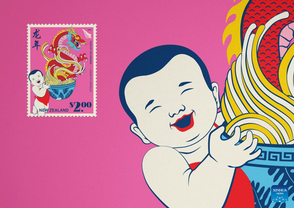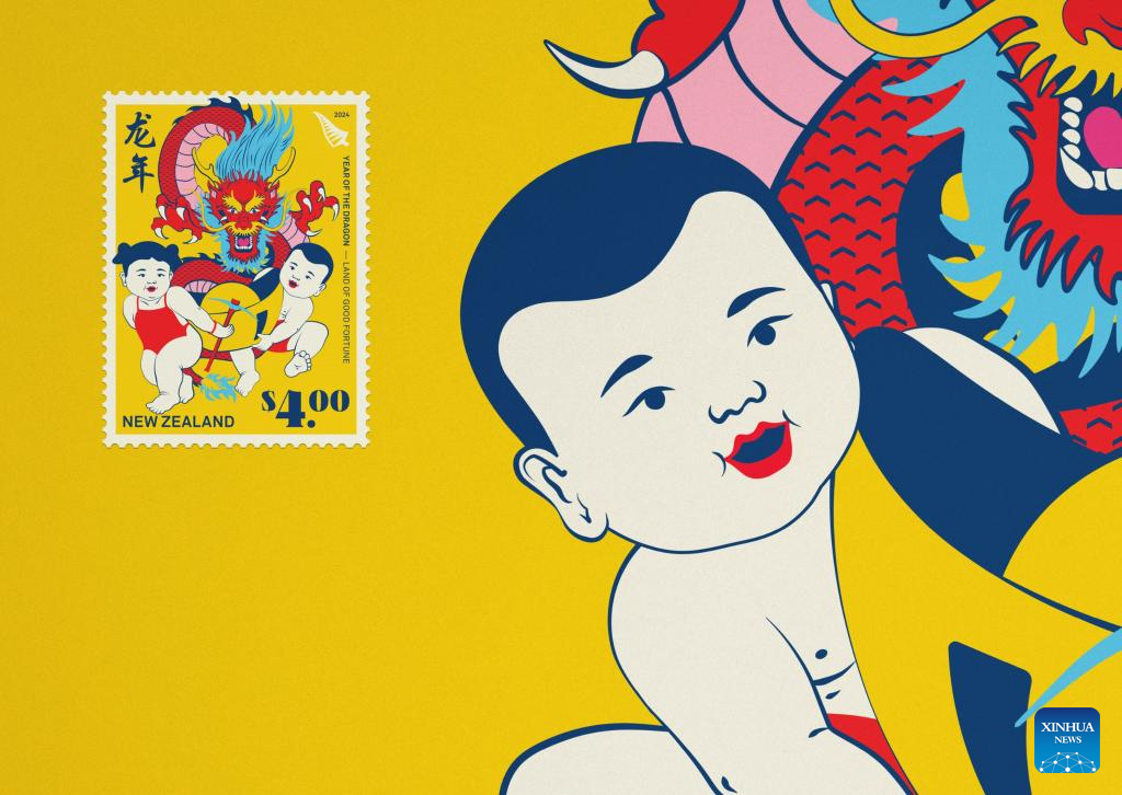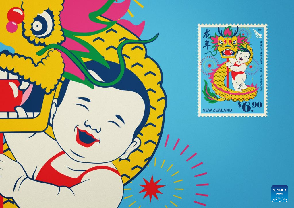 This picture shows the 2024 Year of the Dragon stamp published by New Zealand Post. (New Zealand Post/Handout via Xinhua)