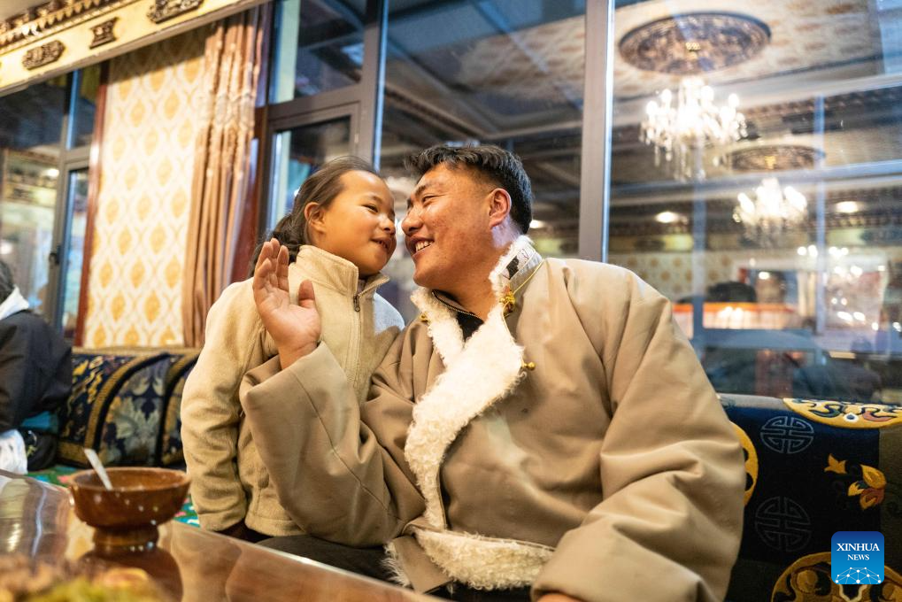As the festival approaches, the village is exuding a cheerful and festive atmosphere. Like other locals, family members of Sichod Wangmo also gathered at home and enjoyed the feast, looking forward to having better days in the upcoming year. (Xinhua/Sun Fei)