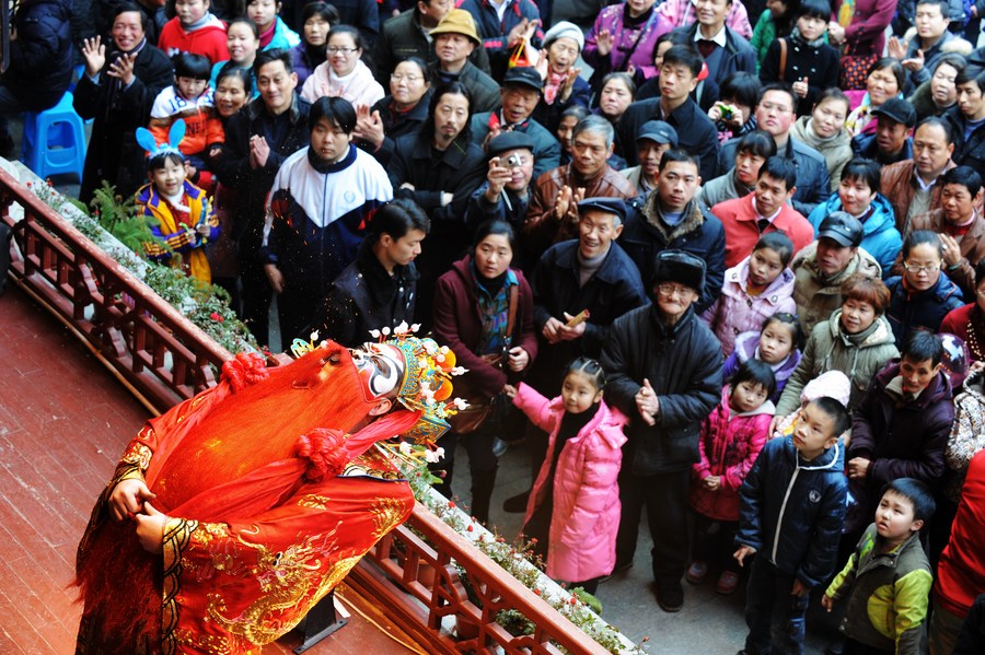 Visitors watch an opera performance in Changsha City, central China's Hunan Province during the Spring Festival of 2011.
