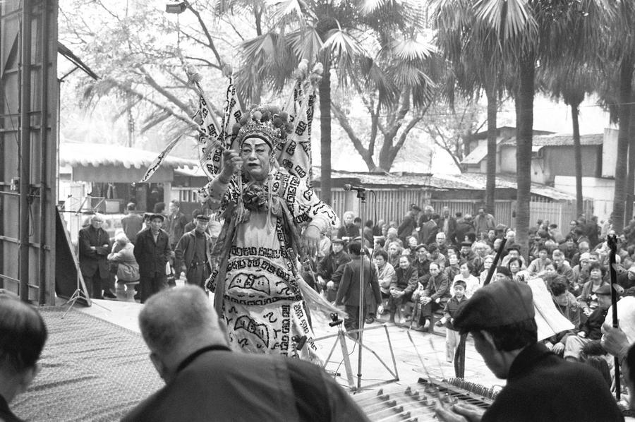 An amateur actor gives an opera performance at a park in Guangzhou, south China's Guangdong Province, ahead of the Spring Festival of 1994.