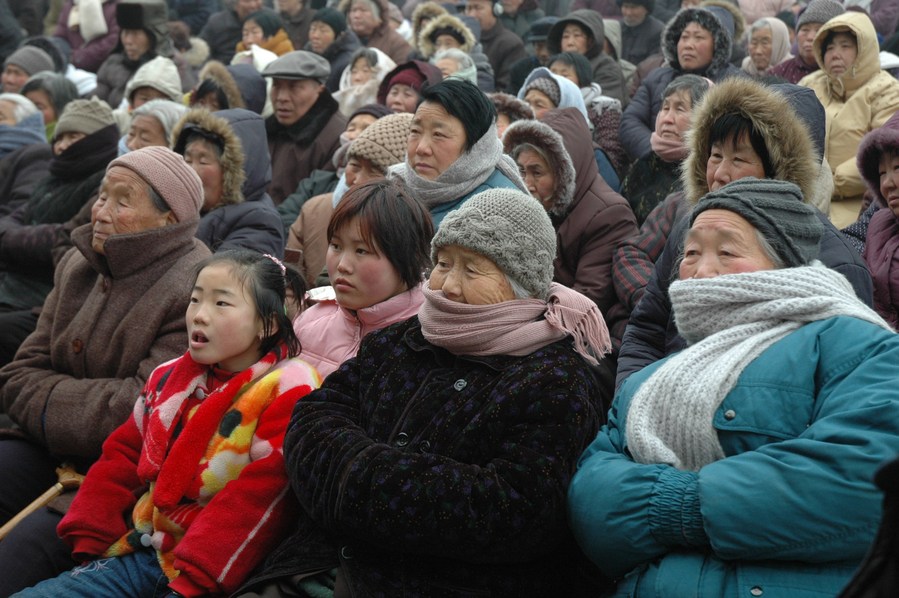 Villagers watch an opera performance in Ziling Village in Qinyang City, central China's Henan Province during the Spring Festival of 2006.