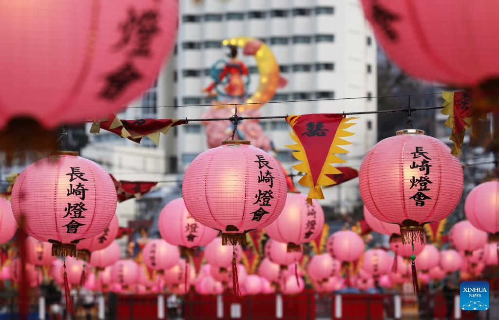 This photo taken on Feb. 14, 2024 shows a view of a lantern festival celebrating the Chinese New Year in Nagasaki, Japan. (Xinhua/Yang Guang)
