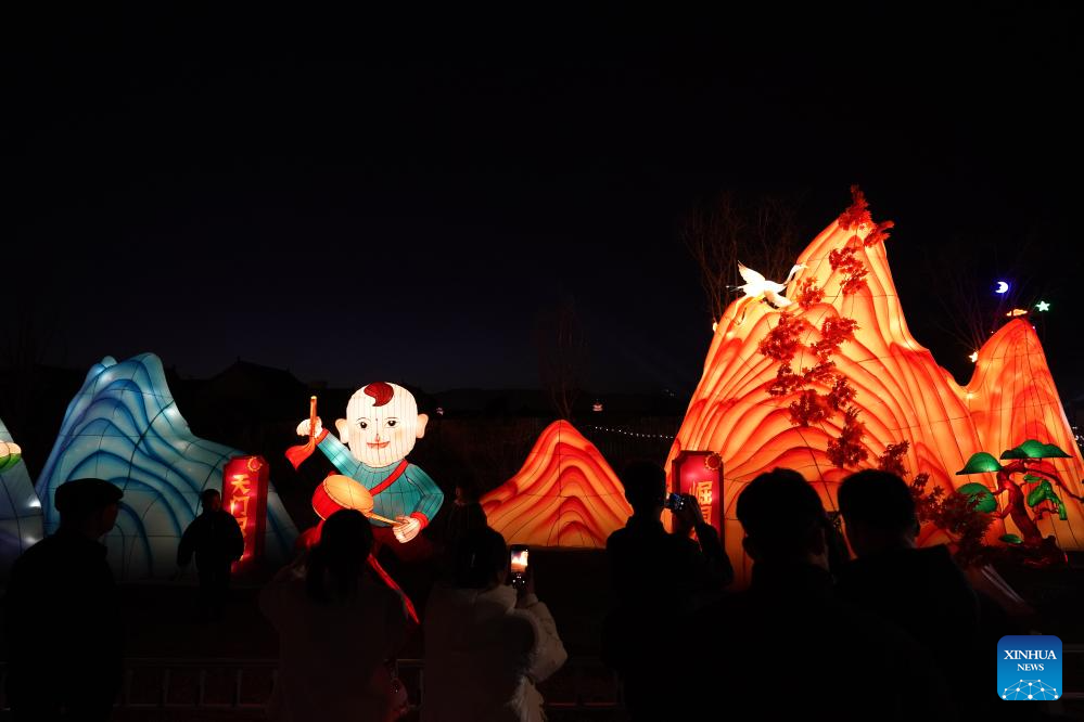 People visit a lantern show held in Taiyuan Ancient County scenic spot in Taiyuan, north China's Shanxi Province, Feb. 16, 2024. (Xinhua/Zhan Yan)