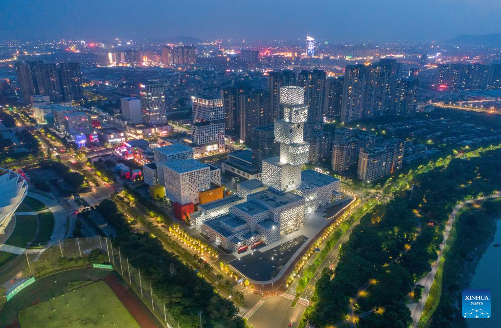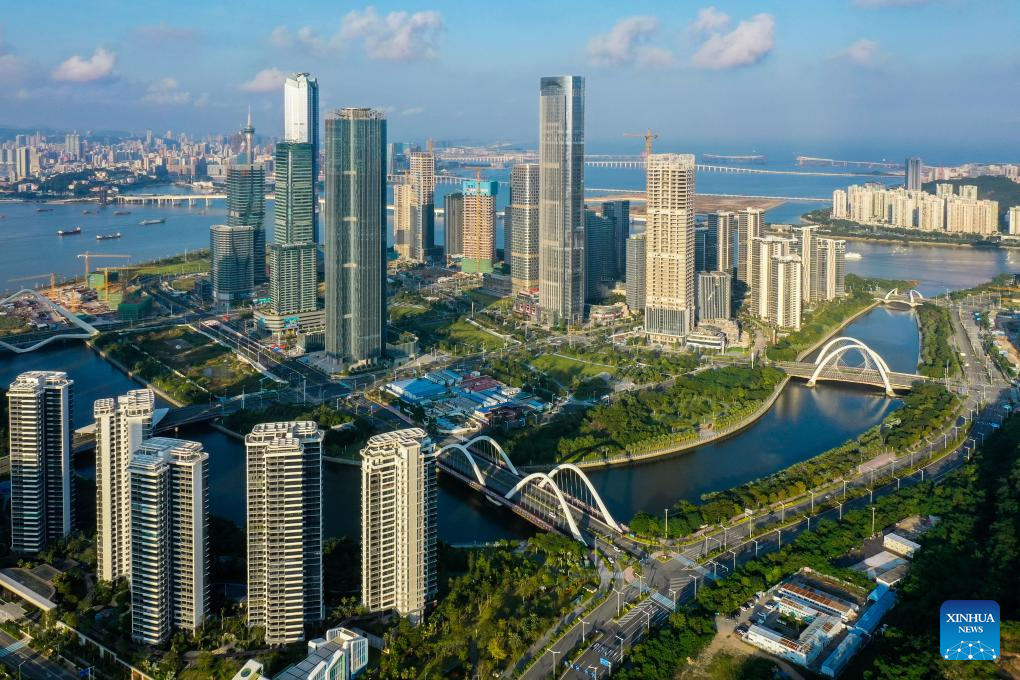 An aerial drone photo taken on Nov. 4, 2023 shows a view of the Hengqin International Financial Center in Zhuhai, south China's Guangdong Province. (Xinhua/Liu Dawei)