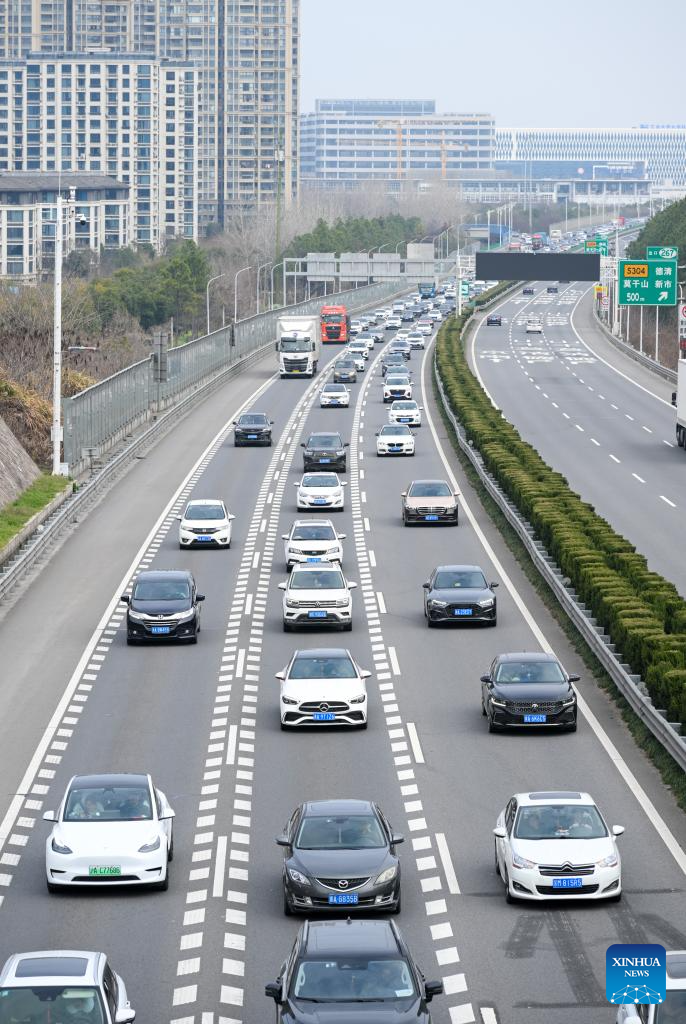 Vehicles move on the expressway surrounding the city of Guangzhou, south China's Guangdong Province, Feb. 17, 2024. China witnessed an increase of passenger trips on the last day of the eight-day Spring Festival holiday. (Xinhua/Lu Hanxin)