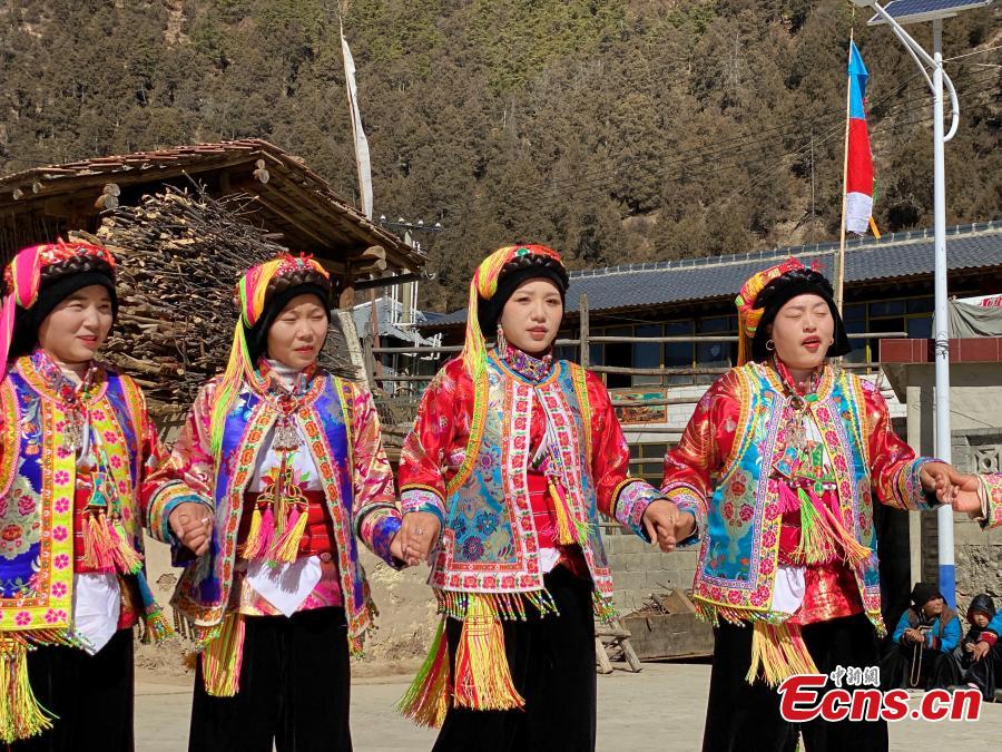 The Tibetan New Year coincides with the Chinese Lunar New Year, or the Spring Festival, which falls on Feb. 10 this year. During celebrations, local Tibetan people perform this traditional dance.