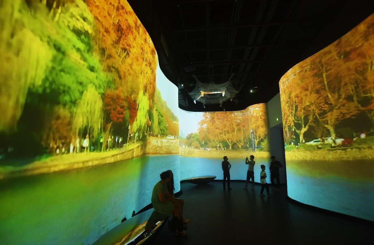People visit an immersive experience hall at the West Lake Museum in Hangzhou, east China's Zhejiang province. (People's Daily Online/Long Wei)