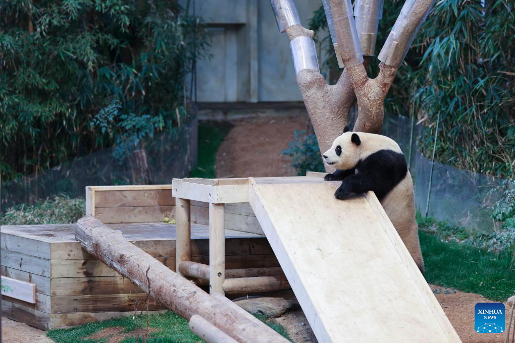 This photo taken on Feb. 20, 2024 shows giant panda Fu Bao at Everland theme park in Yongin, South Korea. Giant panda Fu Bao is scheduled to return to China in April. (Xinhua/Yao Qilin)