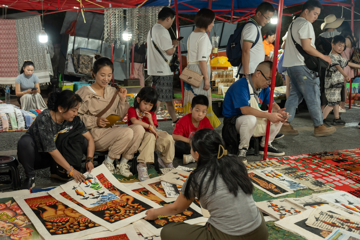 Chinese tourists purchase local traditional handicrafts at a night market in Luang Prabang, Laos, on Sunday. [Photo/Xinhua]