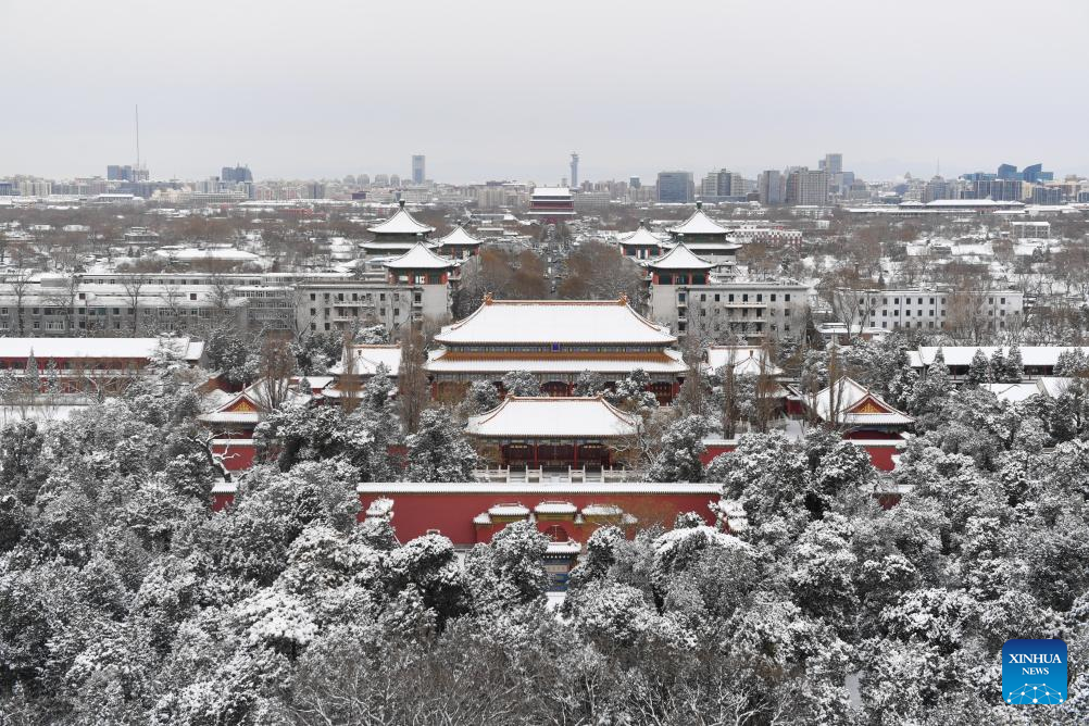 This photo taken from Jingshan Park on Feb. 21, 2024 shows the snow scenery in Beijing, capital of China. Beijing saw a snowfall on Tuesday. (Xinhua/Ju Huanzong)
