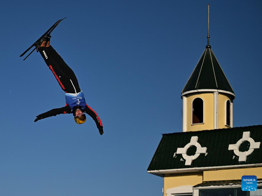 Jia Zongyang of Liaoning competes during the men's aerials competition at the 14th National Winter Games in Hulun Buir, north China's Inner Mongolia Autonomous Region, Feb. 21, 2024. (Xinhua/Yang Guanyu)