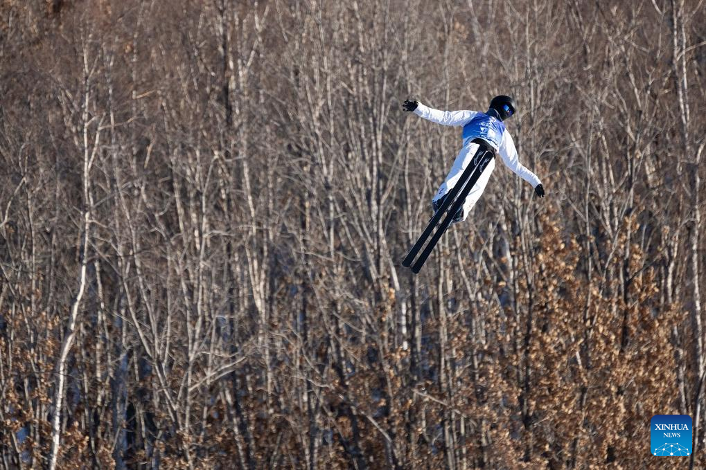 Jia Zongyang of Liaoning competes during the men's aerials competition at the 14th National Winter Games in Hulun Buir, north China's Inner Mongolia Autonomous Region, Feb. 21, 2024. (Xinhua/Mou Yu)